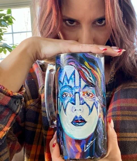This notion is what paved the way to My♥️Art of Glass, born in 2013 out of my love for art and rock roll music. It fueled my creativity and inspired my artistic endeavors, capturing the essence of rebellion and excitement. I began strictly painting on all types of glass and the popularity of my custom hand-painted glasses spread like wildfire. Overtime my paintbrush became the direct vessel from my heart to glass, canvas, murals and wood. Any idea, in any medium, on any surface. My motto is the sky’s the limit!