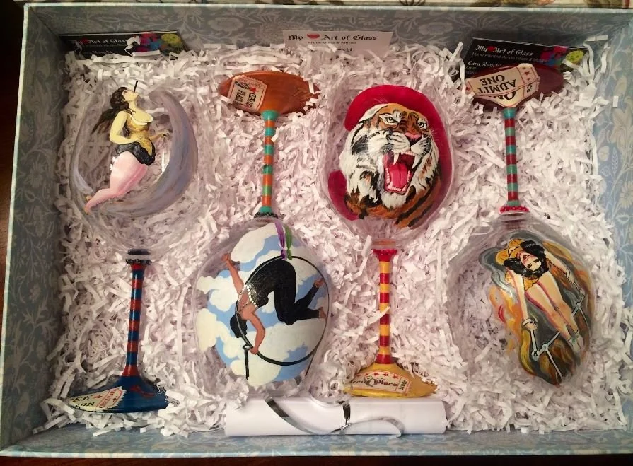 Circus Spectacular Set: 4 16 oz. Wine Glasses getting packed for shipping.