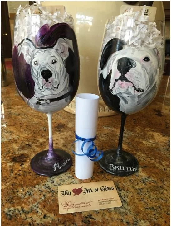 Maxine and Brutus Set: 4 16 oz. Wine Glasses Custom Pet Portraits